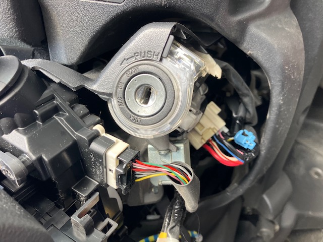 イグニッション周りやその他の部分をばらして車両からデータ抜取り作業を行う。
