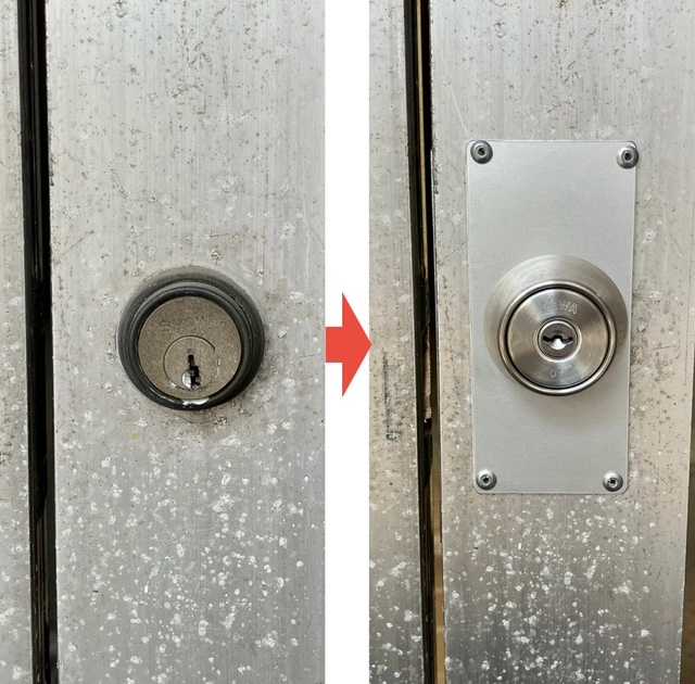 ビルのオーナー様からの依頼でビル入口の鍵が古いので交換したいとご連絡頂きました。