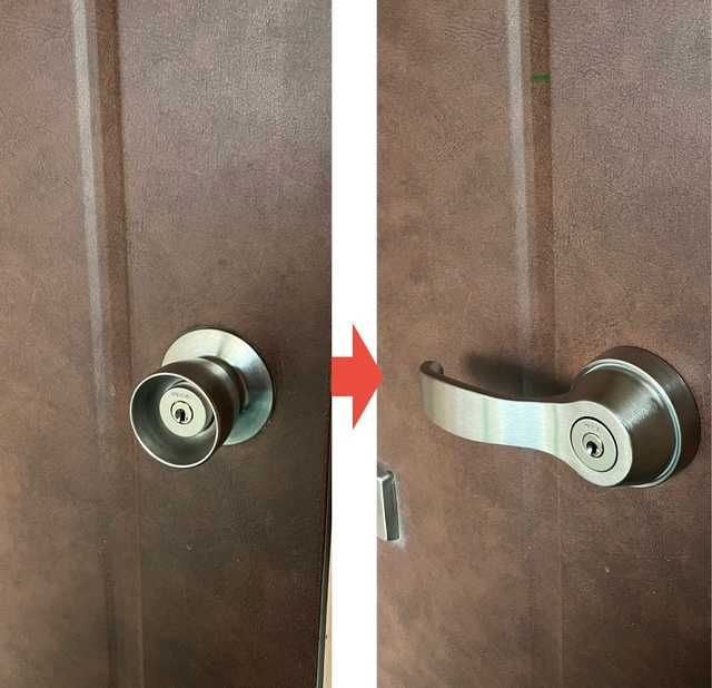 管理人さんからも扉の色が変わらなければ、ノブからレバーへの変更大丈夫ですと言って頂けました。