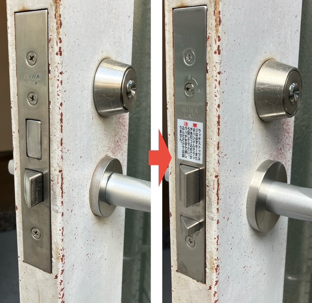 通用口は常に鍵を掛けておきたいという事でしたので、自動施錠タイプの鍵に交換すれば、